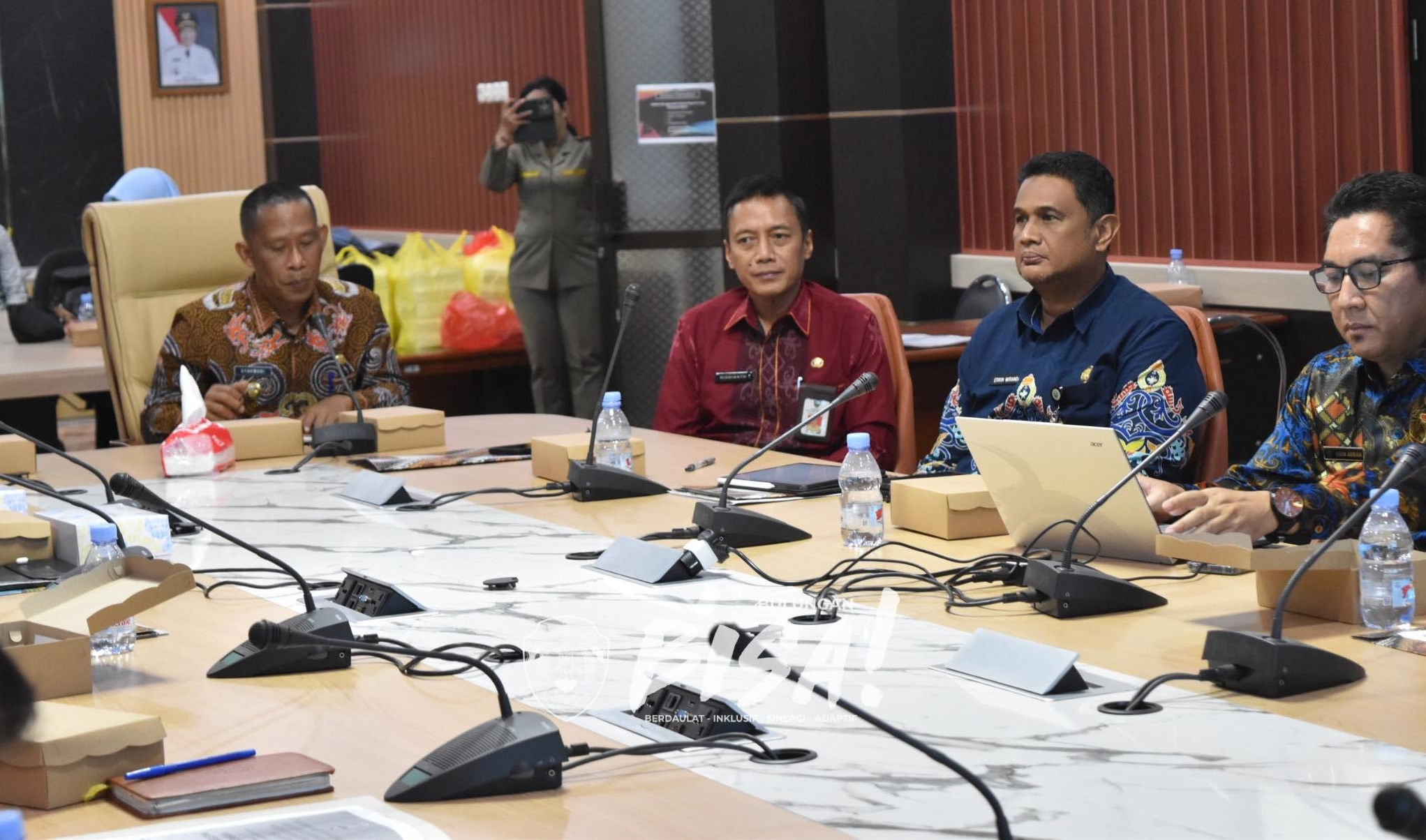 TANJUNG SELOR, Maqnaia – Bupati Bulungan, Syarwani, S.Pd, M.Si dan Sekretaris Daerah (Sekda), H Risdianto, S.Pi, M.Si bersama perangkat daerah terkait mengikuti pemaparan masterplan perencanaan Pasar Induk Tanjung Selor di Ruang Rapat Sekda pada Kamis (21/8). Masterplan disampaikan Dinas Koperasi, UKM, Perindustrian dan Perdagangan bersama CV Enviro Multi Desain, berisi perencanaan penataan secara optimal dan menyeluruh untuk mewujudkan keindahan, ketertiban serta pengelolaan yang baik pada Pasar Induk Tanjung Selor.