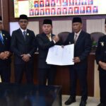Rapat paripurna dilanjutkan penyerahan Rekomendasi LHP BPK RI atas LKPD Provinsi Kaltara 2024 oleh Ketua DPRD Provinsi Kaltara H. Achmad Djufrie kepada Gubernur Zainal didampingi Pj. Sekretaris Daerah Provinsi (Sekprov) Kaltara, Dr. Bustan, S.E., M.Si.