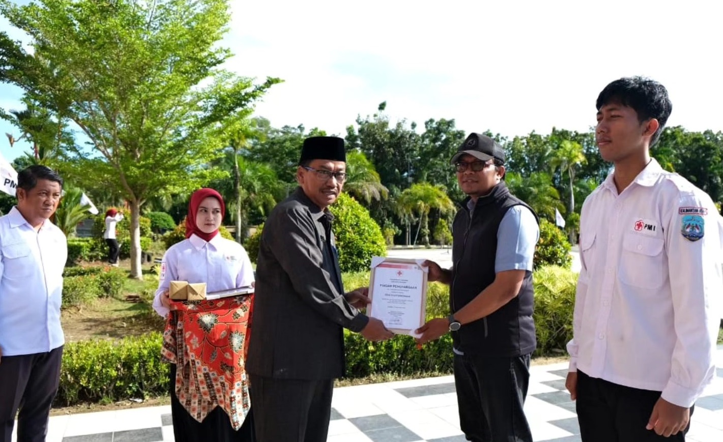 Usai sambutan Plt. Sekda Jabbar dan Ketua PMI Saddam Husein membagikan penghargaan kepada relawan pendonor sukarela ke 15 dan 25 kali, adapun pendonor sebanyak 50, 75 dan 100 kali akan diundang ke provinsi untuk mendapat penghargaan. (ilo/tus/win)