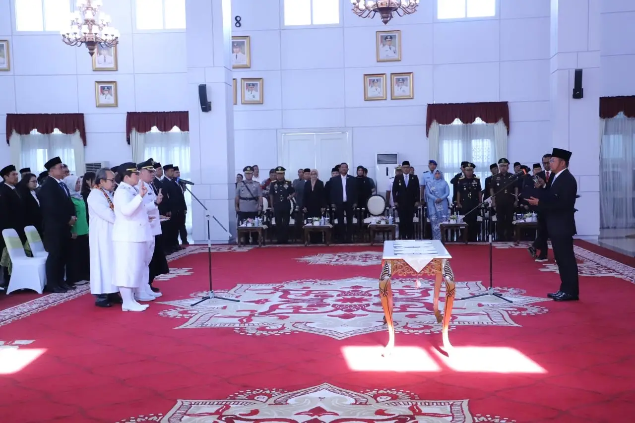 Acara diawali dengan pembacaan SK Mendagri, dilanjutkan pengucapan sumpah jabatan, penandatanganan berita acara pelantikan, serta pemasangan tanda pangkat jabatan oleh Gubernur Harum.