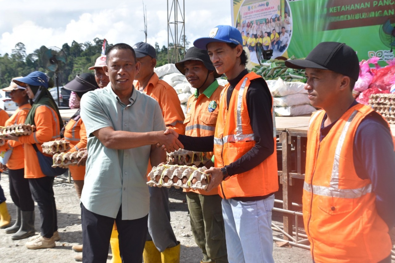 TANJUNG SELOR, Maqnaia – Bupati Bulungan, Syarwani, S.Pd, M.Si dan Wakil Bupati, Kilat, A.Md melaksanakan Gerakan Pangan Murah di Kebun Raya Bunda Hayati di Jl Sengkawit, Tanjung Selor pada Jumat pagi (17/10).