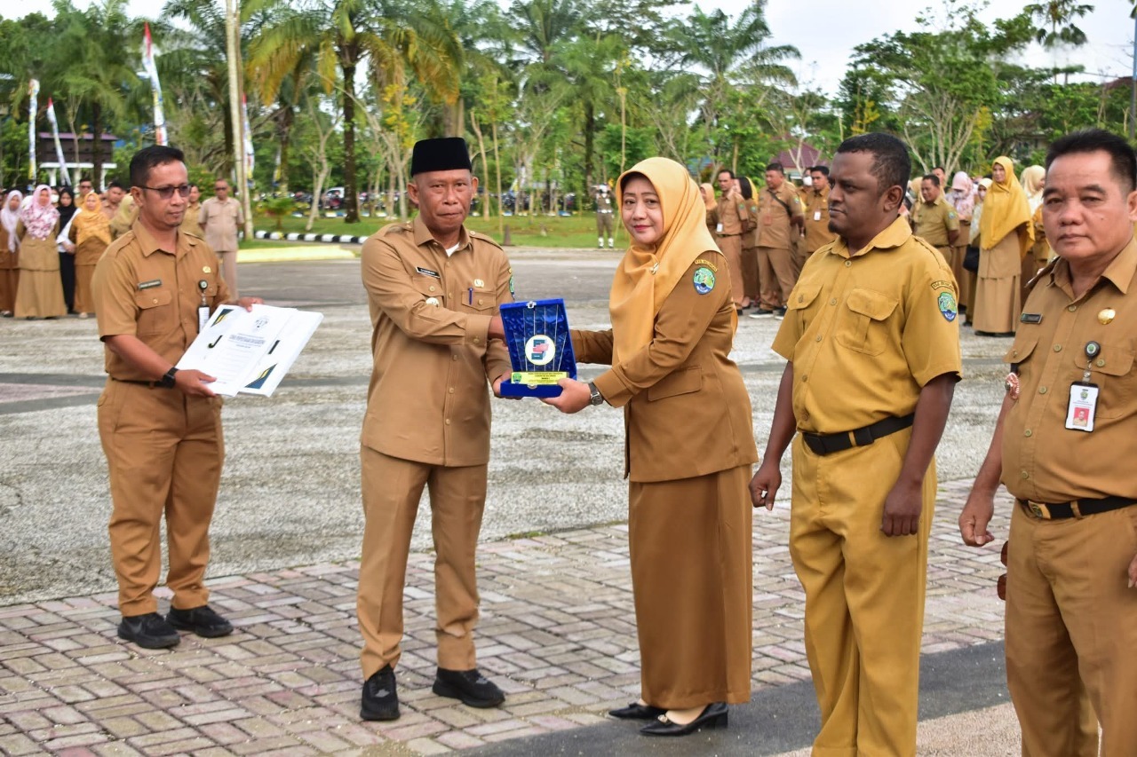 TANJUNG SELOR, Maqnaia – Bupati Bulungan, Syarwani, S.Pd, M.Si memimpin apel gabungan OPD di halaman Kantor Bupati pada Senin (20/10). Apel dirangkai penyerahan hadiah Lomba Kearsipan Perangkat Daerah yang diraih Juara 1 Dinas Perpustakaan dan Kearsipan, Juara 2 Dinas Pendidikan dan Kebudayan dan Juara 3 Dinas Perhubungan. Lomba dinilai oleh juri dari Dinas Perpustakaan dan Kearsipan Provinsi Kaltara serta Inspektorat Kabupaten Bulungan.