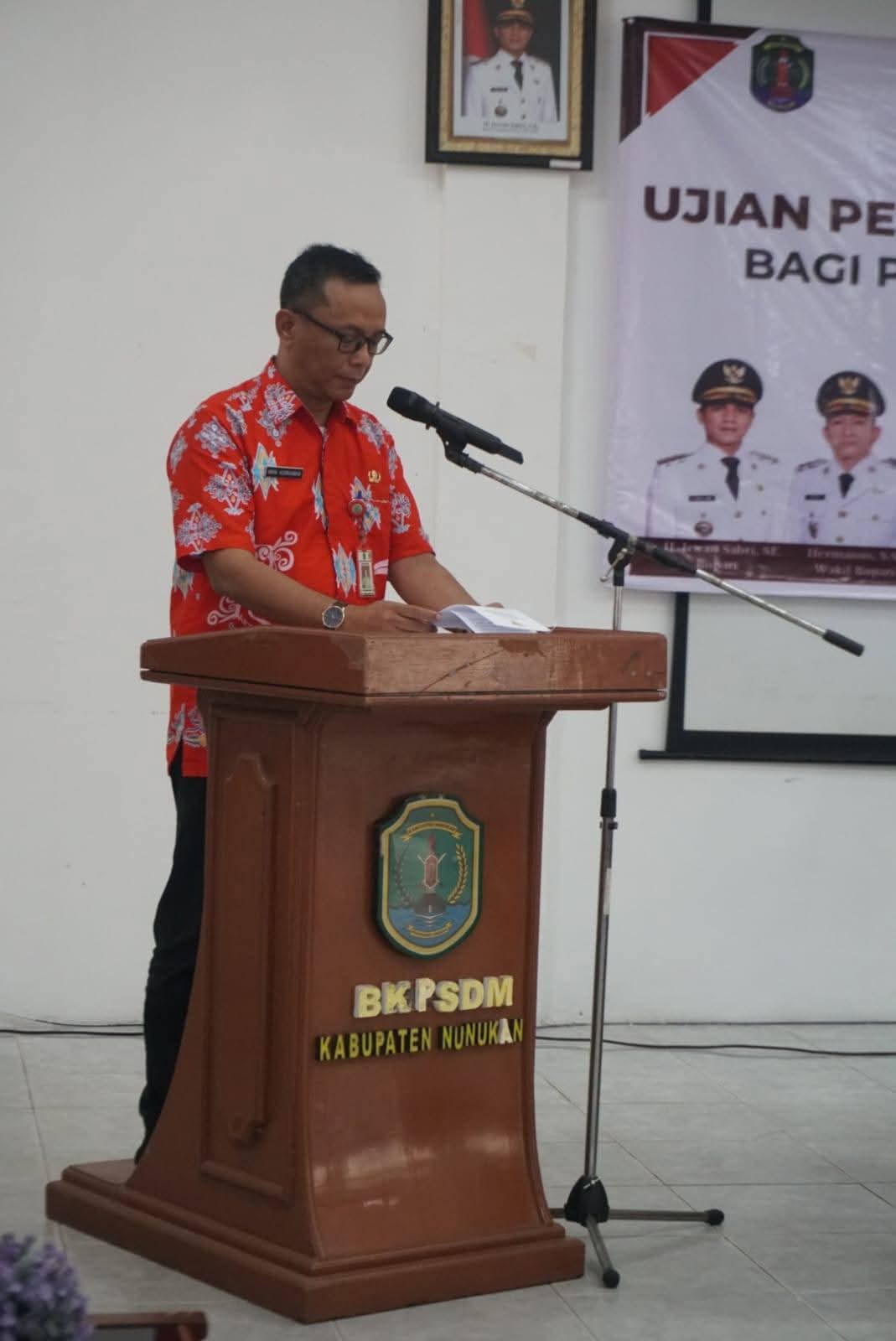 NUNUKAN, Maqnaia – Sebanyak 104 orang ASN dari berbagai instansi di lingkungan Pemerintah Daerah Kabupaten Nunukan mengikuti kegiatan Ujian Dinas dan Ujian Penyesuaian Kenaikan Pangkat T.A. 2025. Kegiatan ini dibuka secara resmi oleh Plt. Sekretaris Daerah (Sekda) kabupaten Nunukan, Drs. Raden Iwan Kurniawan, M.AP mewakili Bupati Nunukan, di Aula Diklat Kantor BKPSDM pada Jum’at 28 November 2025