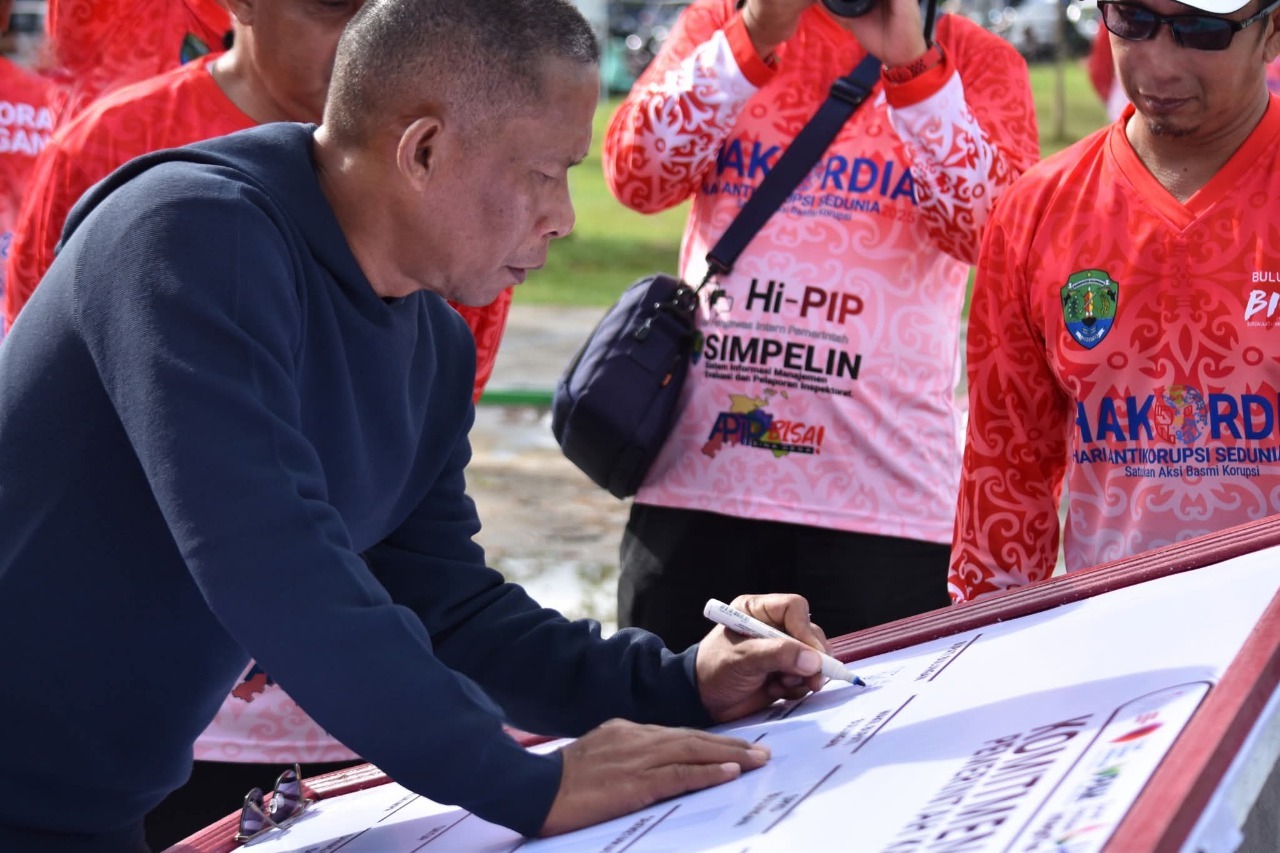 TANJUNG SELOR, Maqnaia – Bupati Bulungan Syarwani, S.Pd, M.Si bersama jajaran Pemkab melaksanakan peringatan Hari Antikorupsi Sedunia (Hakordia) Tahun 2025 di Tebu Kayan, Minggu (14/12/2025). Peringatan Hakordia yang diperingati setiap tanggal 9 Desember ini menjadi momentum penguatan komitmen integritas, khususnya dalam penyelenggaraan pemerintahan dan pelayanan publik di Kabupaten Bulungan.