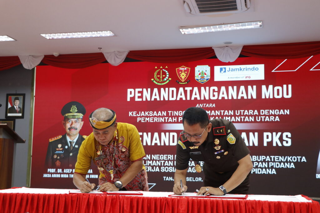 TANJUNG SELOR, Maqnaia – Pemerintah Provinsi (Pemprov) Kalimantan Utara (Kaltara) bersama Kejaksaan Tinggi (Kejati) Kaltara menandatangani Nota Kesepahaman (MoU), serta Kejaksaan Negeri (Kejari) dengan pemerintah kabupaten/kota se-Kaltara perjanjian kerjasama terkait pidana kerja sosial bagi pelaku tindak pidana, Kamis (18/12).