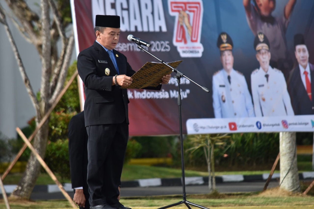 TANJUNG SELOR, Maqnaia – Wakil Bupati (Wabup) Bulungan, Kilat, A.Md memimpin Upacara Peringatan Hari Bela Negara (HBN) ke 77 Tahun 2025 di halaman Kantor Bupati pada Jumat (19/12). Wabup membacakan amanat Presiden RI, Prabowo Subianto yang menegaskan, semangat bela negara mampu menjaga Indonesia tetap berdiri.