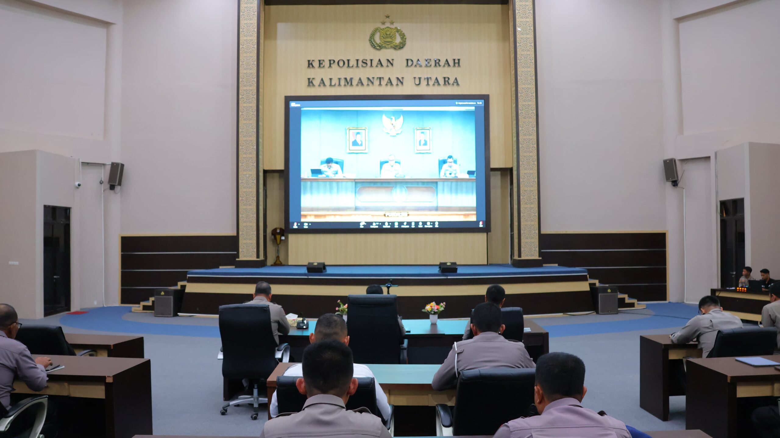 TANJUNG SELOR, Maqnaia – Kepala Kepolisian Daerah Kalimantan Utara, Irjen Pol. Djati Wiyoto Abadhy, S.I.K., bersama Pejabat Utama (PJU) dan Kapolres/ta Jajaran Polda kaltara mengikuti kegiatan Analisis dan Evaluasi (Anev) tentang Situasi Keamanan dan Ketertiban Masyarakat (Sitkamtibmas) secara virtual melalui video conference (vicon).