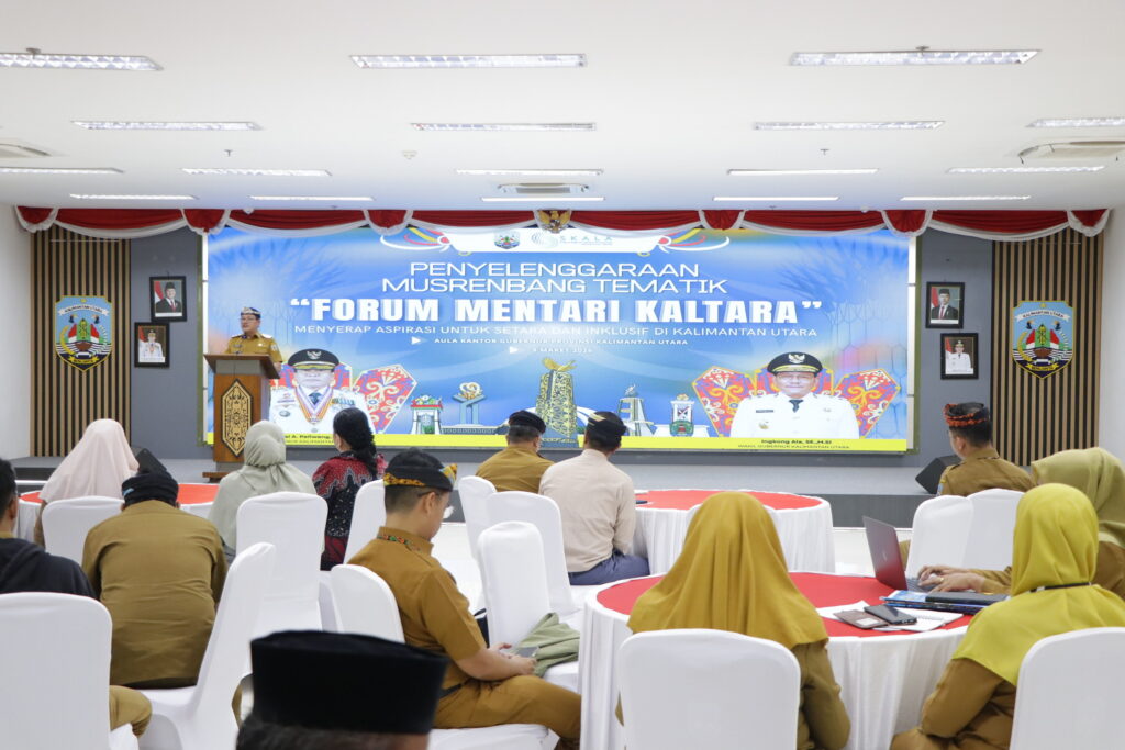 TANJUNG SELOR, Maqnaia – Wakil Gubernur (Wagub) Kalimantan Utara (Kaltara) Ingkong Ala, S.E., M.Si., membuka kegiatan Musyawarah Perencanaan Pembangunan (Musrenbang) Tematik Forum Penjaringan Aspirasi Mentari Kaltara (Menyerap Aspirasi untuk Setara dan Inklusif di Kalimantan Utara), digelar di Ruang Serbaguna Kantor Gubernur Kaltara, Senin (9/3) pagi.